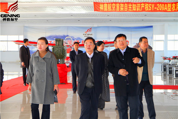 高海濤巡視員及工作組參觀了通遼市神鷹飛機(jī)制造在限公司。通遼市神鷹通用航空有限公司董事長(zhǎng)邱志剛向檢查組詳細(xì)介紹了“SY-200”農(nóng)用飛機(jī)和植保無人機(jī)研發(fā)制造情況,匯報(bào)了公司當(dāng)前和今后的發(fā)展目標(biāo)和方向。期間,高海濤巡視員還親切地詢問了公司在發(fā)展建設(shè)中遇到的困難。