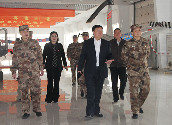 4月15日下午,為深入貫徹習(xí)近平主席“平戰(zhàn)結(jié)合”強(qiáng)軍思想發(fā)展戰(zhàn)略,內(nèi)蒙古軍區(qū)動(dòng)員局局長(zhǎng)白曙光、參謀付劍鋒,政治工作局干事李艷雷,在通遼軍分區(qū)司令員閆德峰、政委饒崇書、動(dòng)員處處長(zhǎng)劉波一行陪同下到內(nèi)蒙古神鷹航空集團(tuán)就推動(dòng)國(guó)防動(dòng)員和國(guó)防后備力量建設(shè)高質(zhì)量發(fā)展進(jìn)行現(xiàn)場(chǎng)檢查指導(dǎo)工作,內(nèi)蒙古神鷹航空集團(tuán)董事長(zhǎng)邱志剛、總經(jīng)理司治莊、常務(wù)副總經(jīng)理孫學(xué)慧等領(lǐng)導(dǎo)陪同參觀。