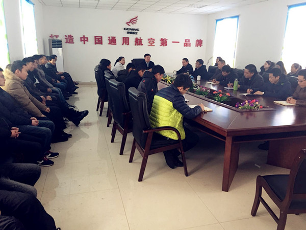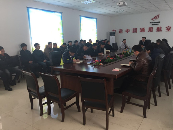 通遼市神鷹通用航空有限公司全體人員在飛機(jī)制造廠小會(huì)議室召開(kāi)新年動(dòng)員大會(huì)